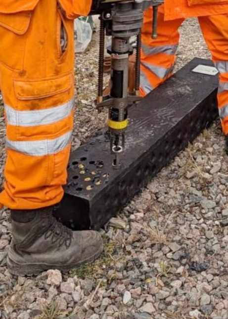 Vrtačka SD-36B-PS je speciálně navržena pro vrtání železničních pražců vyrobených z kompozitního recyklovaného plastu a syntetických materiálů.