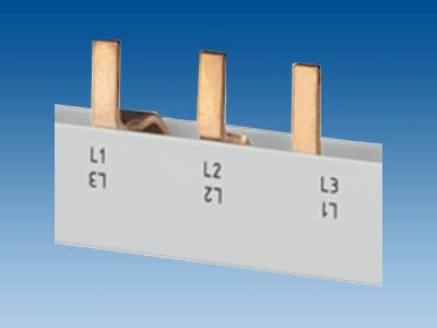 2x 3fáz. bezpečná na dotyk kolíková přípojnice SENTRON 5ST3 coby přídavné komponenty pro proudové chrániče a jističe.