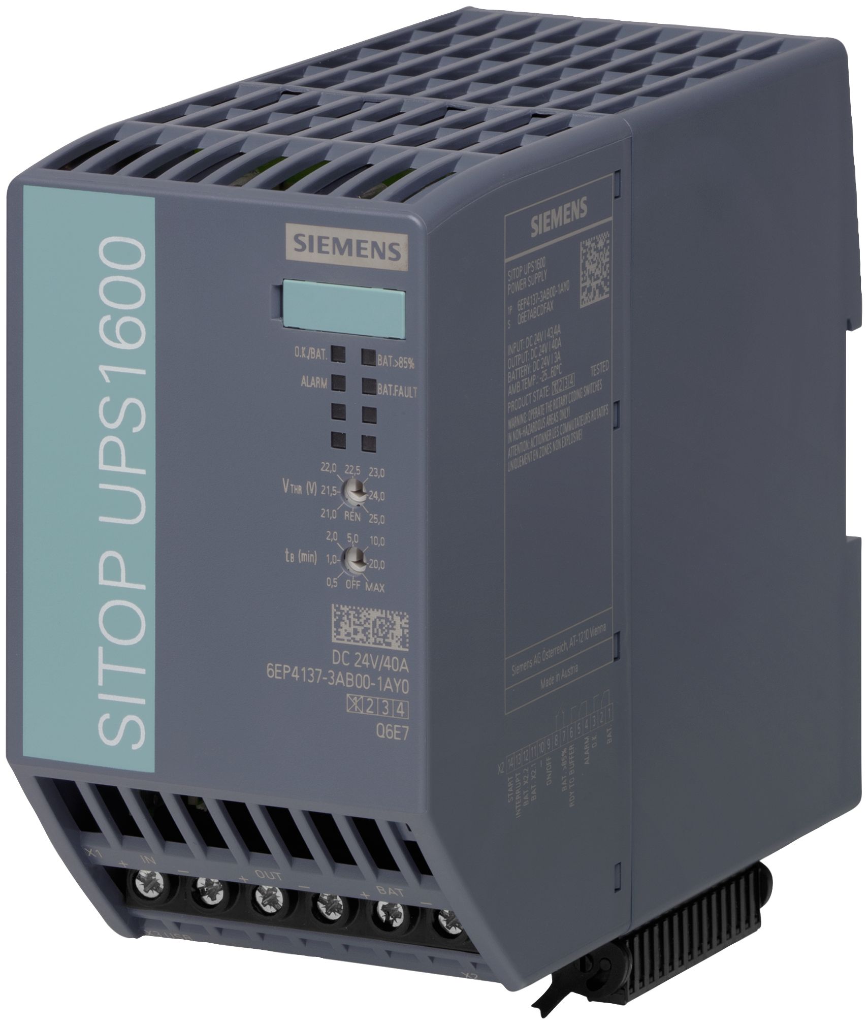 Záložní zdroj SITOP UPS1600 s bateriovými moduly UPS1100 poskytuje vyrovnávací paměť pro dlouhodobé výpadky napájení a zajišťuje tak provoz závodu bez přerušení.