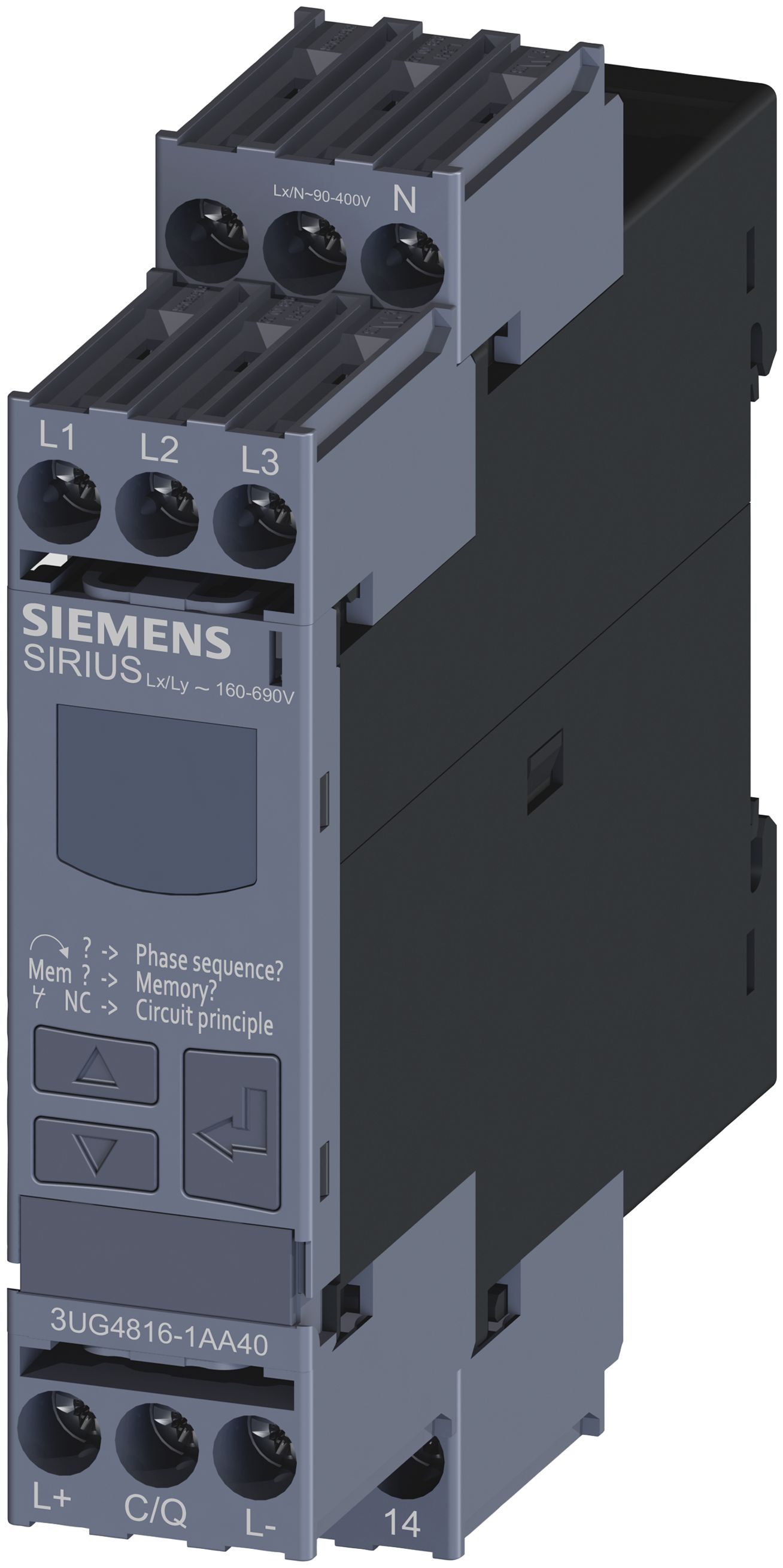 Digitální monitorovací relé pro sledování sítě v 3fázovém napětí s neutrálním vodičem.