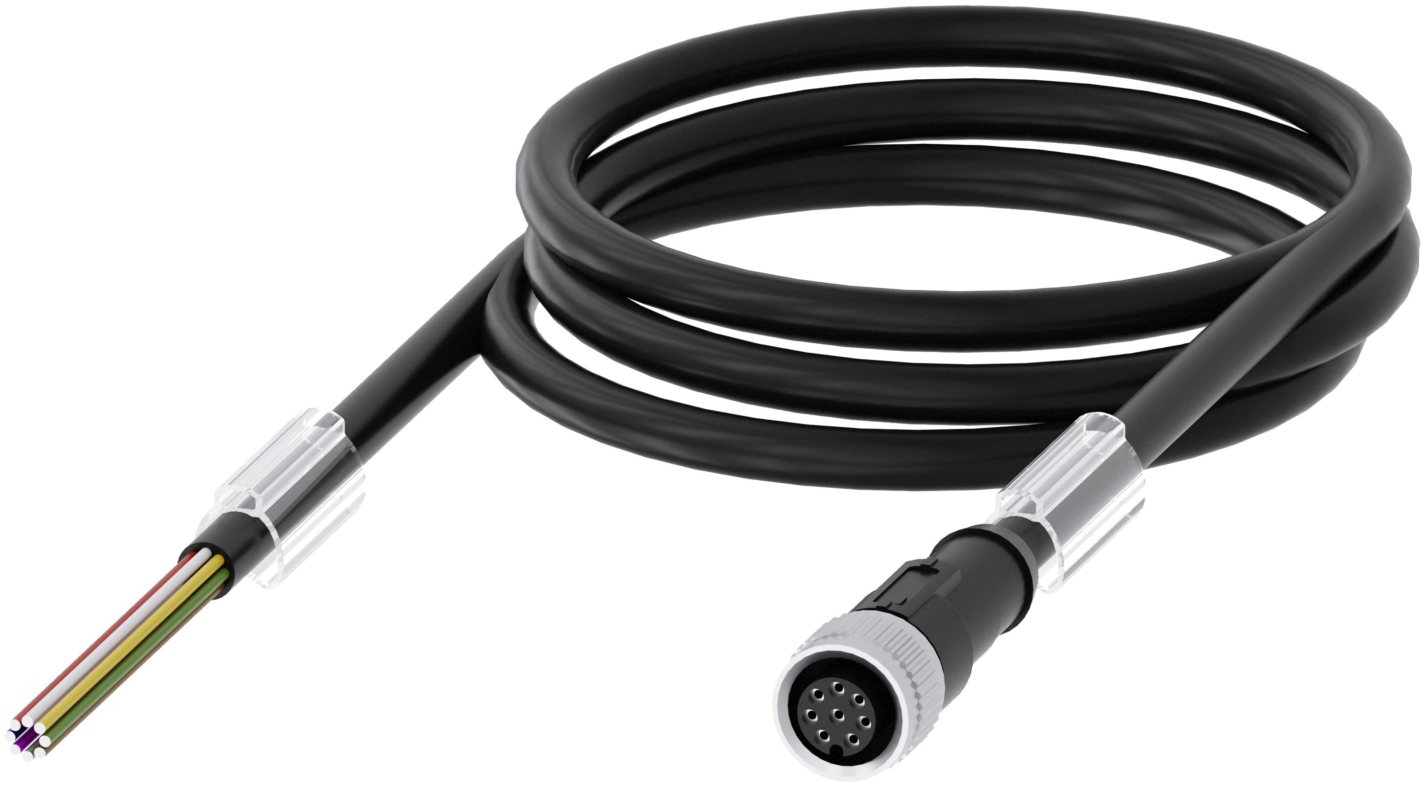 Připojovací kabel 8pól s volným koncem kabelu je určen pro spolehlivé připojení s délkou 15m a rovný konektor M12.