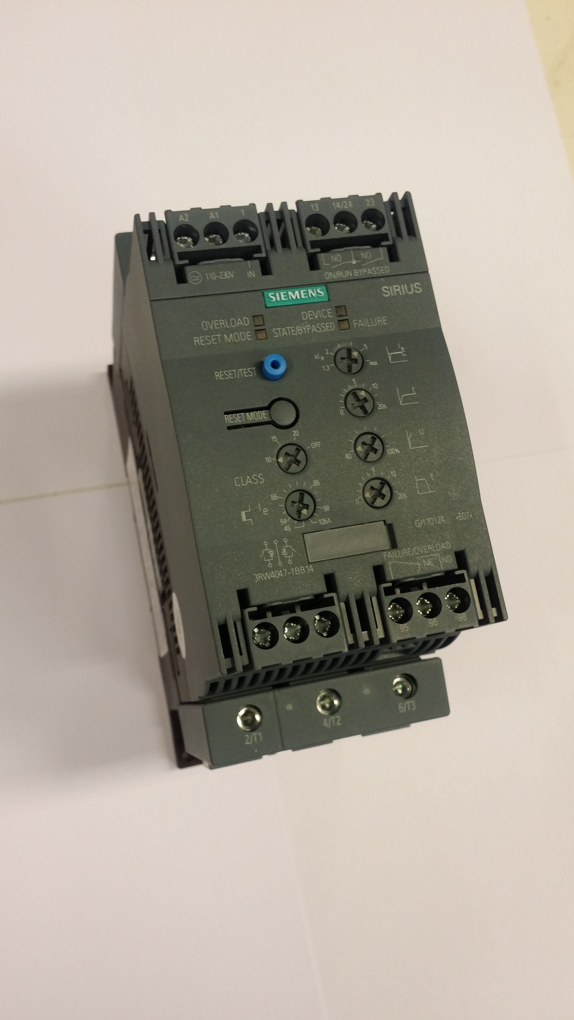 64139 | 3RW4047-1BB14 SIEMENS 3RW4047-1BB14, softstartér S3, 106A, 55kW/400V, 40 stupňů, AC200-480V, AC/DC 110-230V |