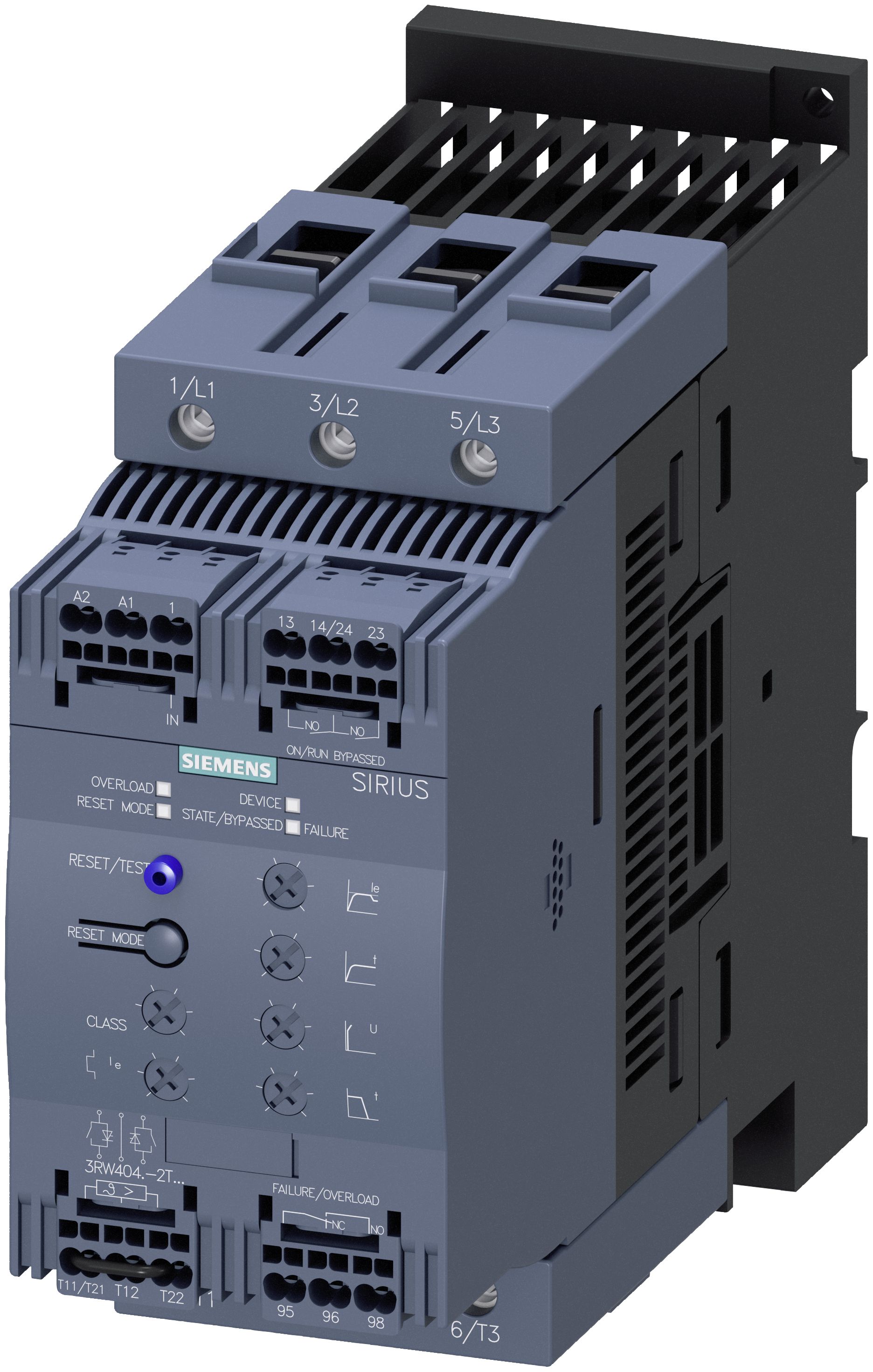 Softstartér SIRIUS 3RW40 pro standardní aplikace k pozvolnému rozběhu a doběhu třífázových asynchronních motorů.