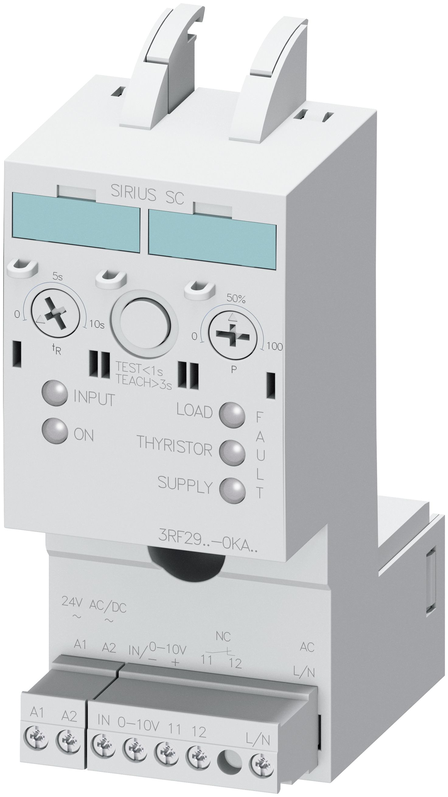 Výkonový akční člen s proudovým rozsahem 50 A a napětím 400-600 V pro polovodičové relé a stykač.