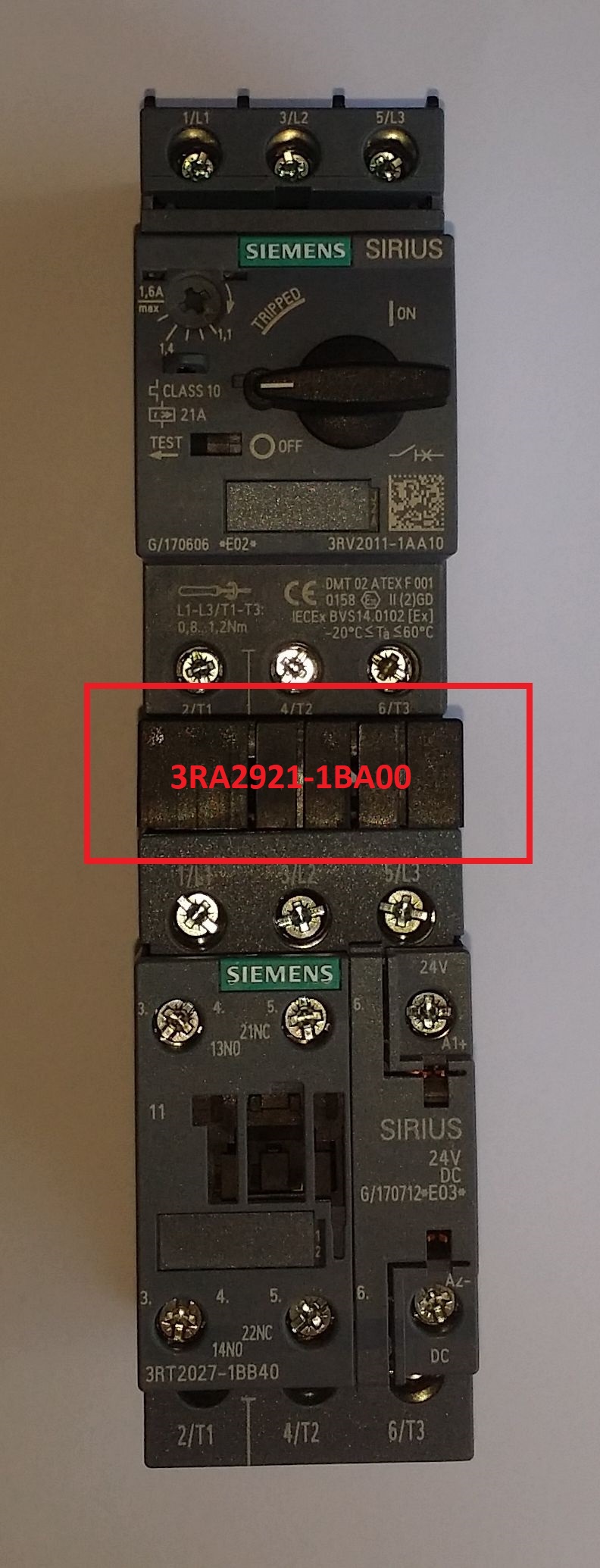 11429 | 3RT2024-1BB40 SIEMENS 3RT2024-1BB40, stykač, AC-3e, 12A/5,5 kW/400V, 3pólový, DC 24V, 1 NO + 1 NC, šroubová svorka |