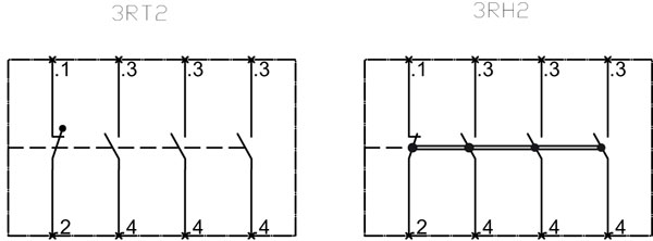 Pomocný spínač SIRIUS 3RH29 slouží k rozšíření pomocných kontaktů v okruhu řídicího proudu.