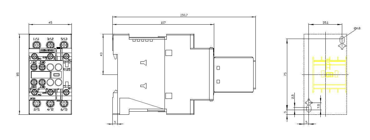 Pomocný spínač rozebíratelný výkonový stykač SIRIUS 3RT2 k zapnutí motorů, který nabízí vysoký výkon v kompaktní konstrukci a spolehlivost kontaktů.