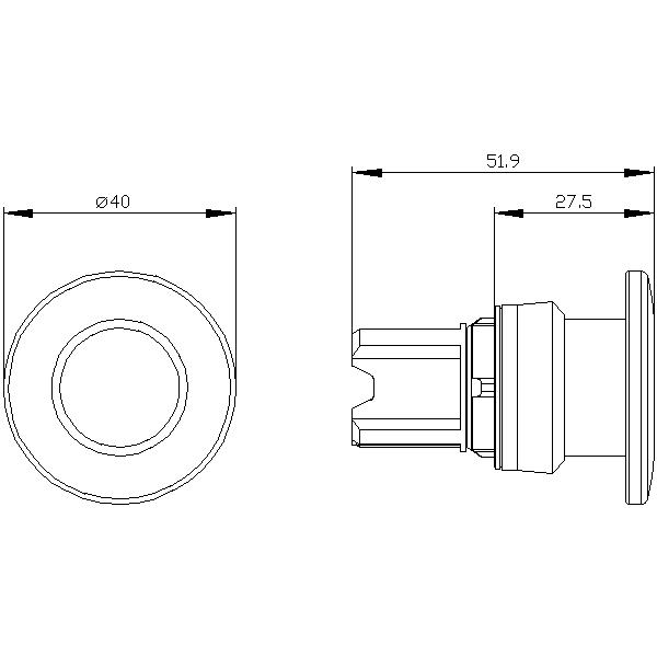 Vratné hřibové tlačítko SIRIUS ACT s velkou rukojetí pro pohodlné ovládání celou rukou.
