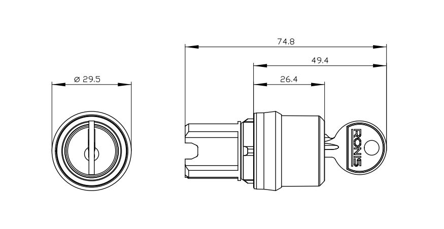 Klíčový spínač RONIS je kulatý spínač pro vyšší požadavek na přístupovou bezpečnost.