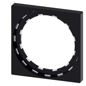 Černý samostatný rám k popsání povelových a signalizačních zařízení SIRIUS ACT, navržený pro snadnou montáž a vysokou odolnost.