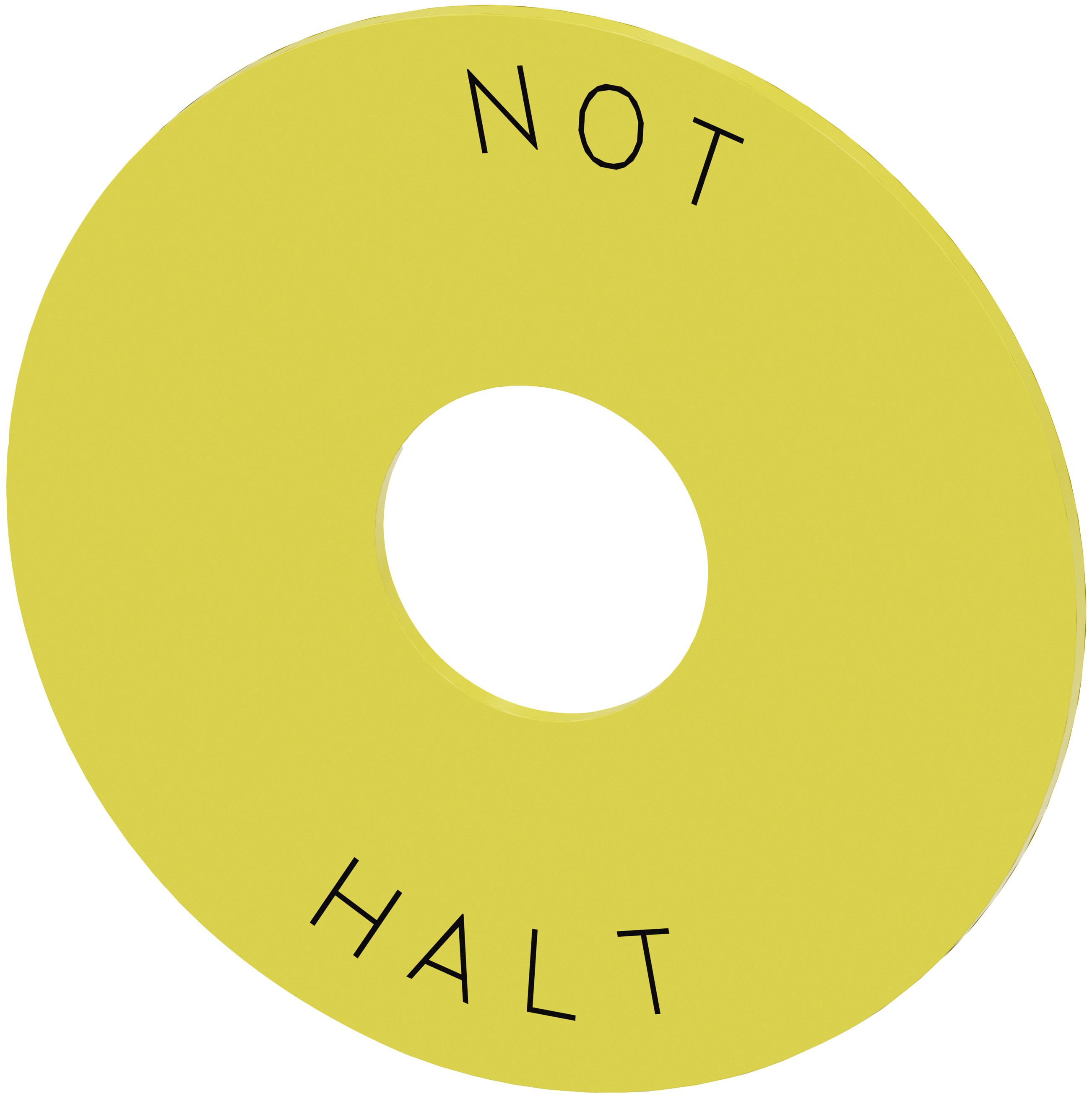 Podložka ze žlutého materiálu s popiskem "NOUZOVÉ ZASTAVENÍ" určená pro ovládání a signalizaci zařízení SIRIUS ACT.