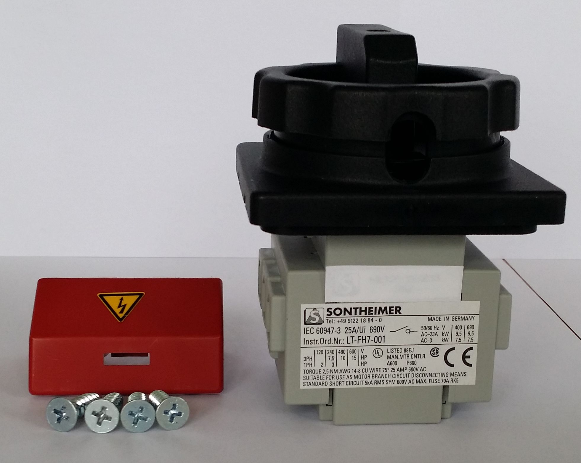 62029 | HLT25/4E/Z33 SONTHEIMER HLT25/4E/Z33, Hlavní vypínač 4-pólový, 25 A, polohy 0-1, úhel sepnutí 90° šroubové svorky, černo/černý kulatý zamykatelný ovladač |
