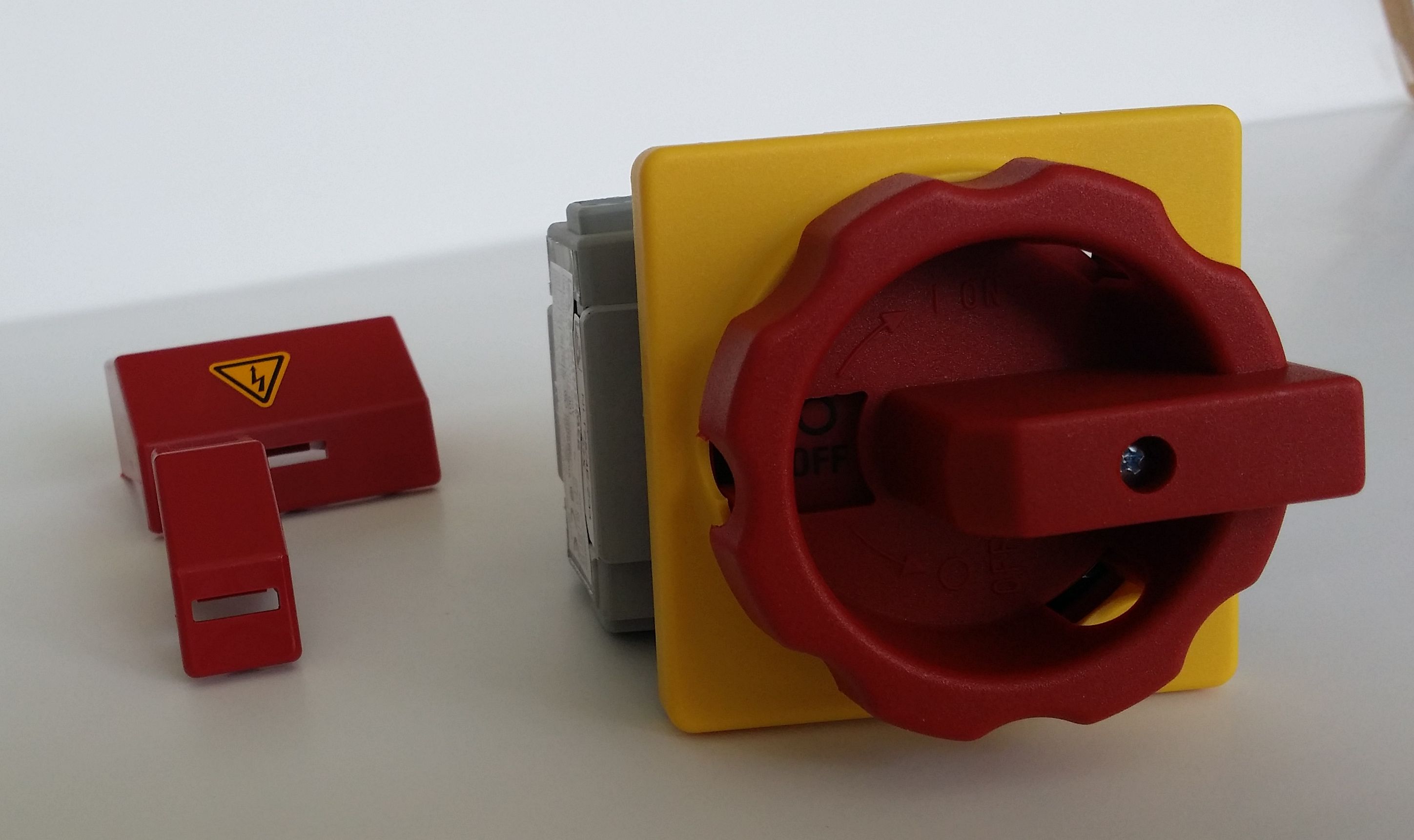 54627 | NLT25/4E/Z33 SONTHEIMER NLT25/4E/Z33, Nouzový 3-pólový vypínač 25A s uchycením do panelu na 4 šrouby polohy 0-1;90°, žluto/červený kulatý uzamykací ovladač |