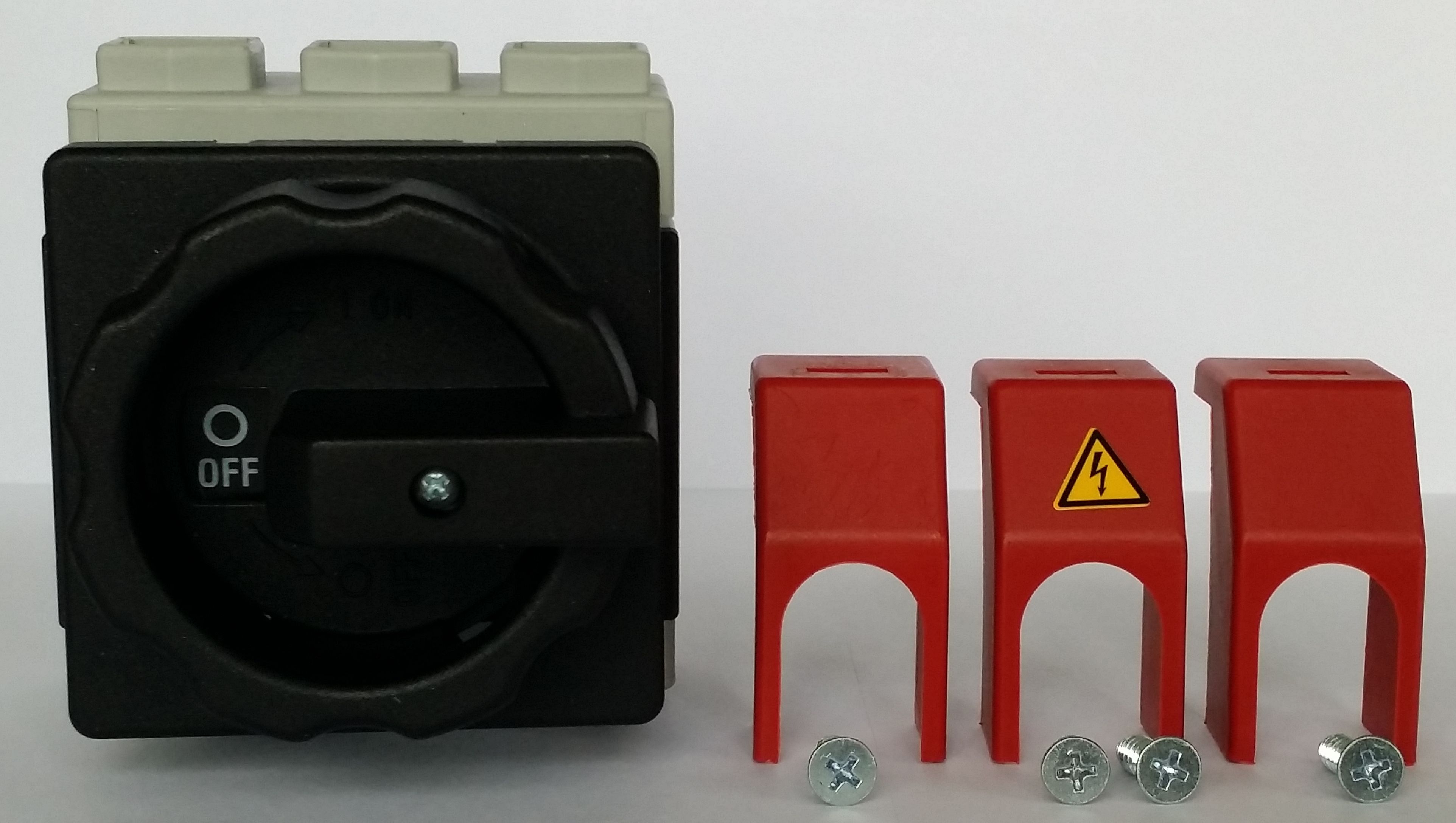 58384 | HLT125/3E/Z33 SONTHEIMER HLT125/3E/Z33, Hlavní vypínač 3-pólový, 125A, polohy 0-1, úhel sepnutí 90° šroubové svorky, černo/černý kulatý zamykatelný ovladač |
